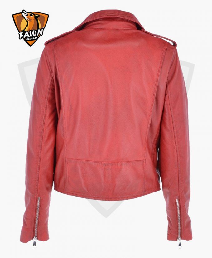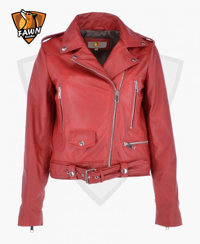 Classic style women’s leather biker jacket is especially design for ladies Racer. This biker jacket give a high proof security and modern look when you’re riding a bike and motorcycle. We use the high quality material in our leather jacket. Features in the leather jacket Premium quality, Regular Fit, Zip closure, Biker Sleeves, and red color.