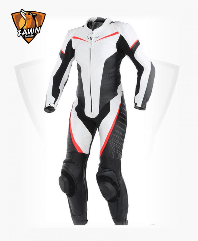 Custom name mens motorcycle leather suit are making for design for professional racer. This motorbike suit offers a safety and stylish look when you’re riding a bike and motorcycle. We use the high quality martial in our MotoGP clothing. Features in the 100% genuine Cowhide leather, Approved internal & external Protectors on Knee, Shoulder Elbows and Back, YKK Zippers for Performance, Outer Knee sliders for performance.