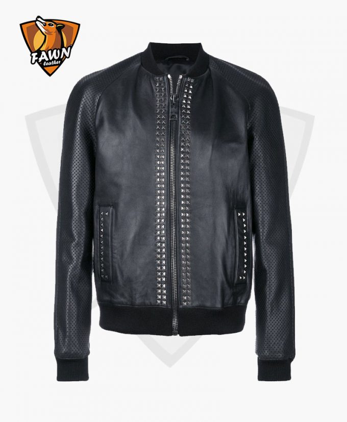 Be the first to review “Customized Punk Style Bomber Studded Leather Jacket”