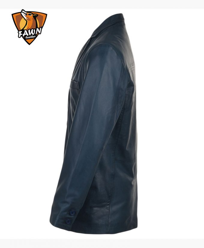 Handmade fashion men’s leather jacket is the perfect choice for all the stylish man. This trench coat gives the modern look in regular days. This is trendier fashionable and outclass coat made by fawn leathers. We use the high quality material in our leather blazer. Features in the leather jacket Premium quality, Regular Fit, modern style, Zip closure, and navy color.