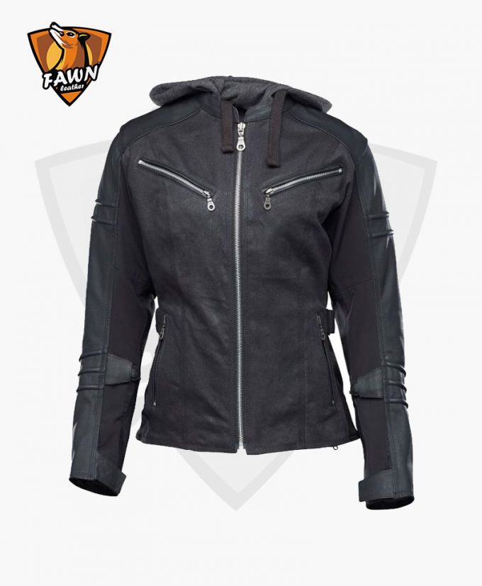 We offer ladies black vintage hooded womens motorcycle leather jacket with full road protection for Racer. This motorbike jacket offers a safety and stylish look when you’re riding a bike and motorcycle. We use the high quality martial in our leather outwear. Features in the leather jacket premium quality, regular fit, zip closure, branded zipper closure, and black and red color.