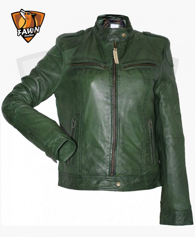 Latest design green women’s leather jacket for stylish men who like to unique look in a crowd. You can wear this leather jacket in every special event. We use the high quality material in our leather fashion jacket. Features in the leather jacket Premium quality, Regular Fit, modern style, Zip closure, and black color.