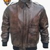Men’s aviator WW2 style A2 leather bomber jacket is design according to World War II. This jacket is especially design for pilot lover. We use the high quality leather in our leather jacket. Features in the leather jacket real leather, full sleeves, two large side pockets, turn down collar, Two inside Pockets, and brown color.