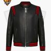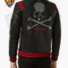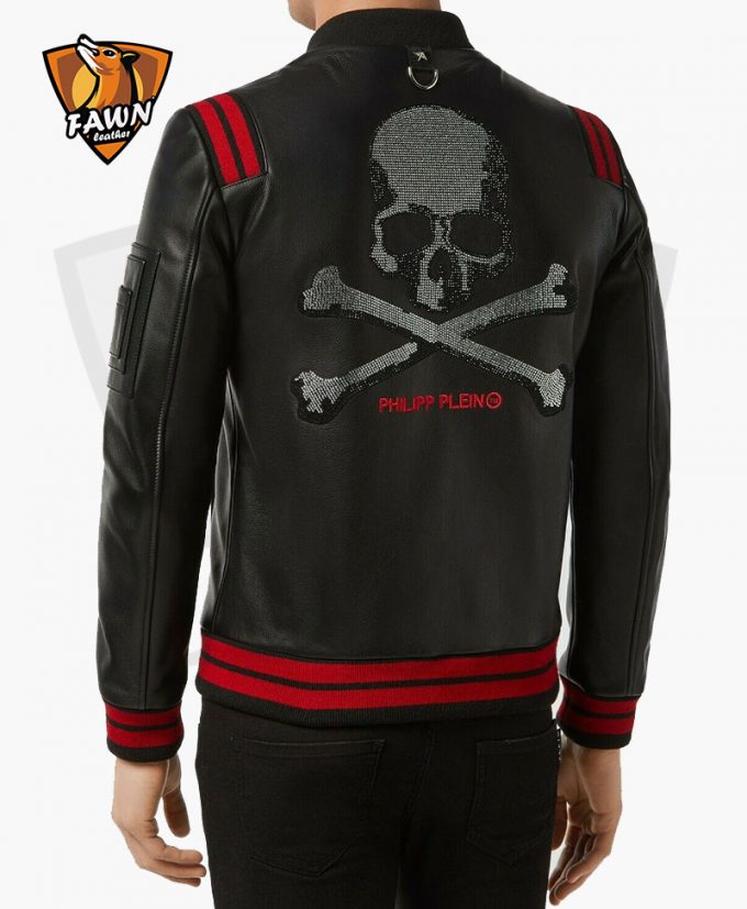 Mens Black Crystal Skull Genuine Printed Leather Jacket
