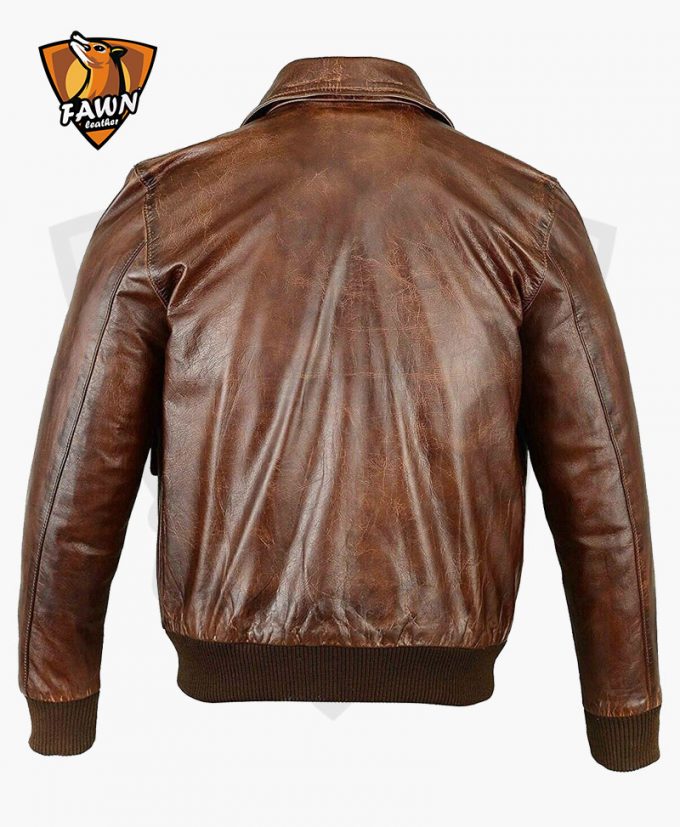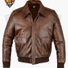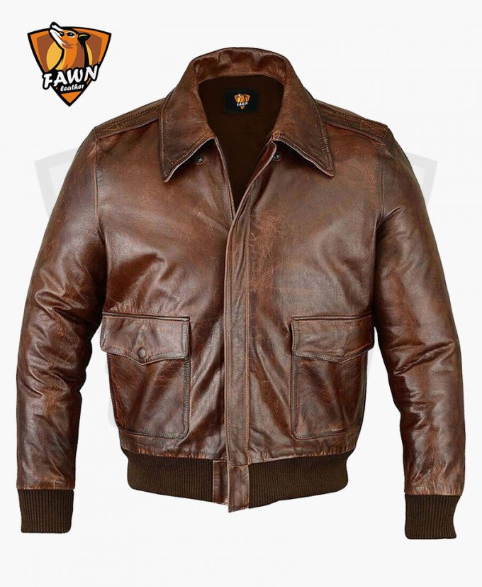 Men’s cafe racer A2 leather bomber jacket is design according to fighter style. This jacket is especially design for cafe racer. We use the high quality leather in our leather jacket. Features in the leather jacket real leather, full sleeves, two large side pockets, turn down collar, Two inside Pockets, Ribbed cuffs,  and brown color.