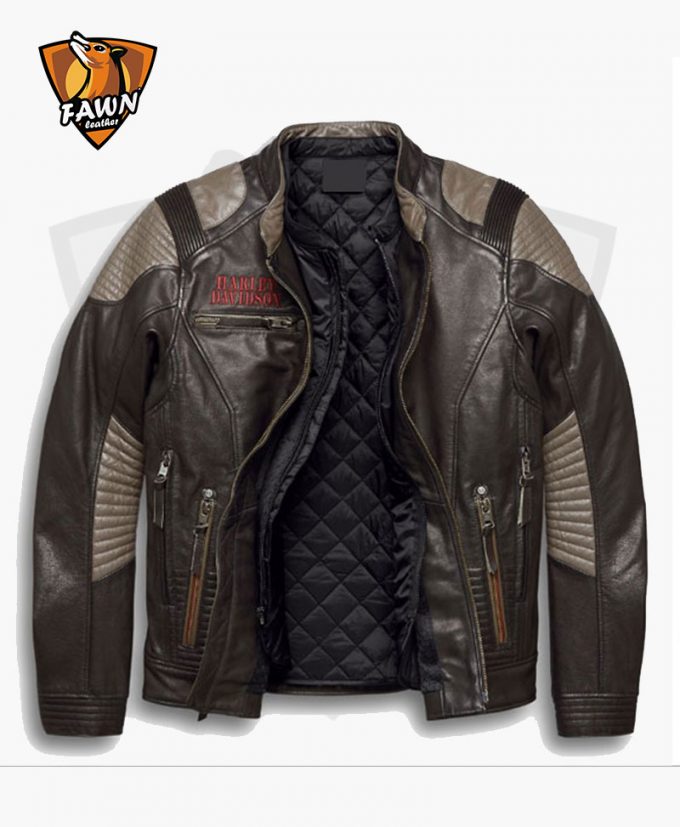 Men’s Exhort Harley Davidson Leather Jacket is especially design for Racer. This motorbike Harley jacket offers a safety and stylish look when you’re riding a bike and motorcycle. We use the high quality martial in our leather jacket. Features in the leather jacket premium quality, regular fit, zip closure, branded zipper closure, two outside Pockets, and brown color.