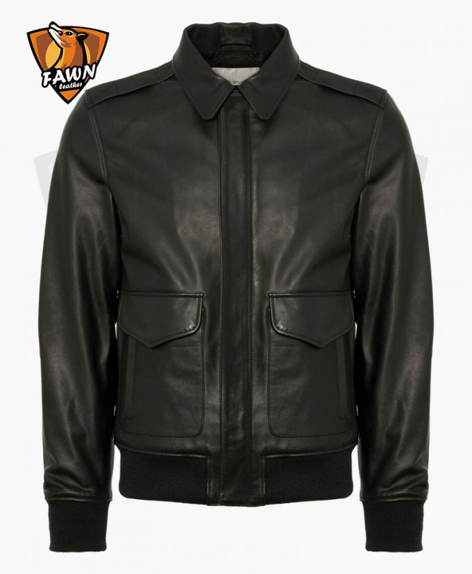 Men’s fighter A2 leather flight bomber jacket is design according to fighter style. This jacket is especially design for cafe racer. We use the high quality leather in our leather jacket. Features in the leather jacket real leather, full sleeves, two large side pockets, turn down collar, Two zip side entry Pockets, Ribbed cuffs,  and black color.