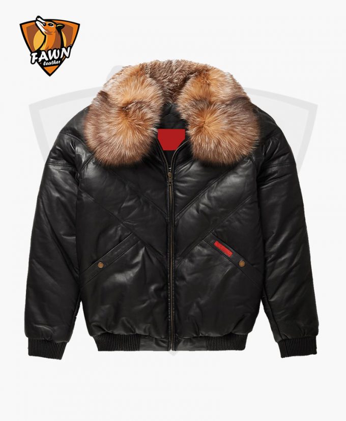 Mens hot sale crystal V bomber leather jacket is especially design for stylish men’s and women’s. This bomber jacket gives a lovely look when you wear it to a special event. We use the high quality material in our leather flight jacket. Features in the leather jacket Premium quality, Regular Fit, Zip closure, and black color.
