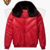 Be the first to review “Mens Red V Bomber Leather Jacket”