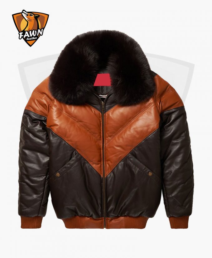 Mens two tone V bomber leather jacket is especially design for stylish men’s and women’s. This bomber jacket gives a lovely look when you wear it to a special event. We use the high quality material in our leather flight jacket. Features in the leather jacket Premium quality, Regular Fit, Zip closure, and black color.