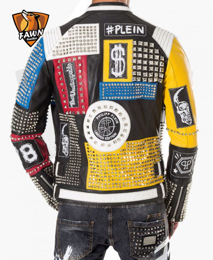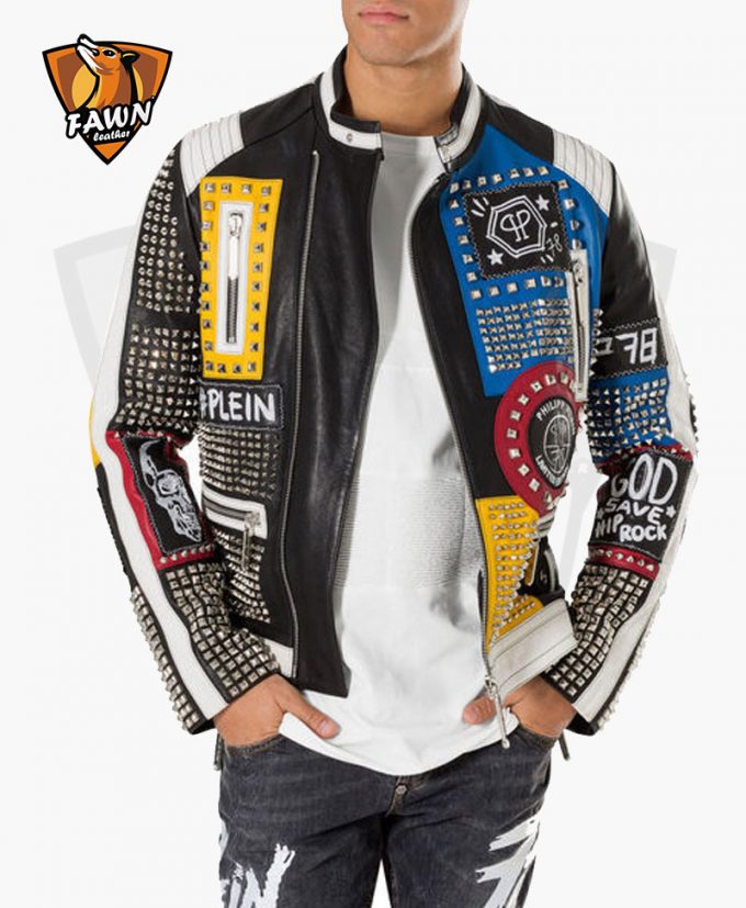 Multi color punk style studded leather jacket is unique, custom, and handmade piece from our jacket shop. This piece gives you special look. You can wear this in every special event. We use the high quality material in our punk studded biker outfit. Features in the leather jacket Premium quality, Regular Fit, spiked style, Zip closure, and Black.