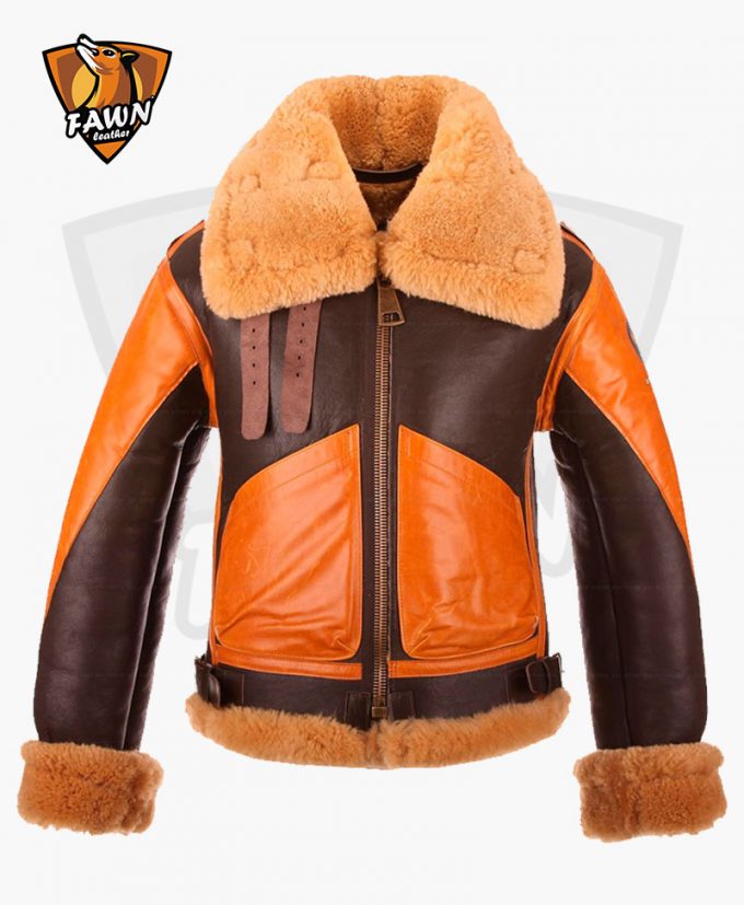 In this winter fashion is in trend In keeping with this trend we offer a new style two tone mens bomber leather jacket with fur. This shearling jacket gives a lovely look and keeps your body warm when you wear it on a regular day. We use the high quality material in our winter outwear. Features in the leather jacket Premium quality fur, Regular Fit, and brown color.