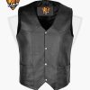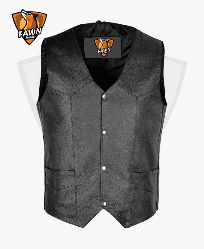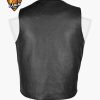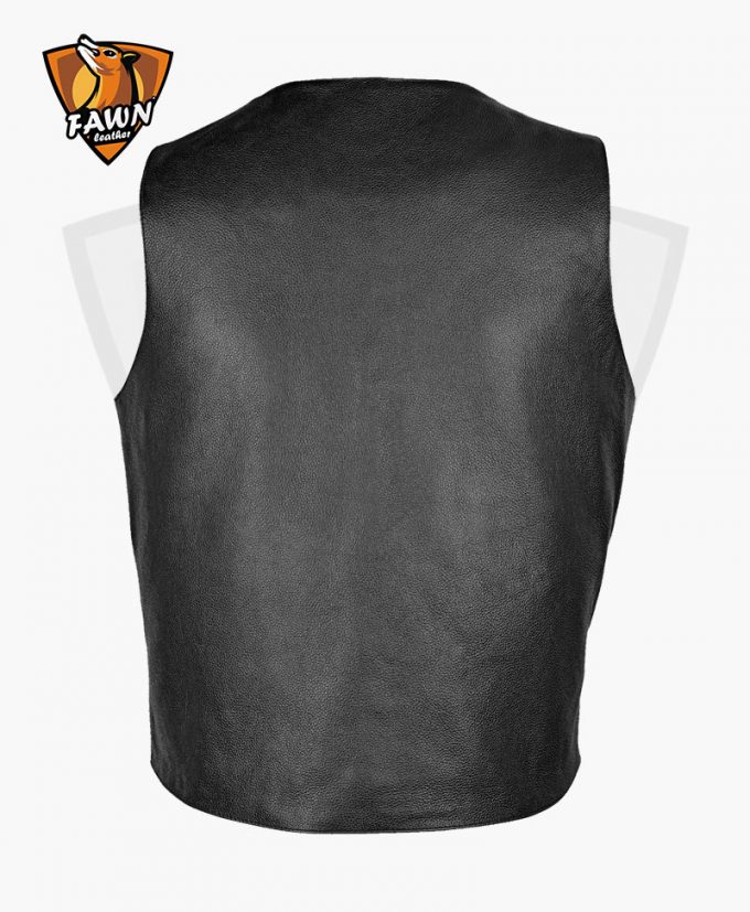Plain side men’s black leather vest is best for all the rider and biker. Ride your motorcycle with our great quality leather vest. We use the premium quality material in our leather garments. Features in the leather vest Premium quality, 1.1-1.2mm full grain leather, Two outside pockets, Satin lining, Regular Fit, modern style, and black color.