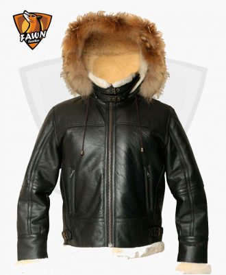 Mens Hooded Flight Bomber Leather Jacket with Fur $260.00