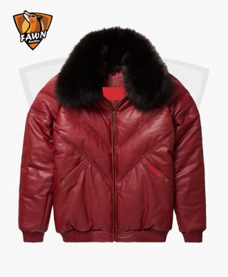 Mens Classic Style V Bomber Leather Jacket