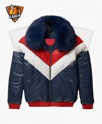 Mens Two Tone Multi Color V Bomber Leather Jacket