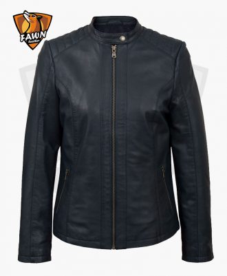 Handmade Women’s Navy Biker Leather Bomber Jacket $220.00