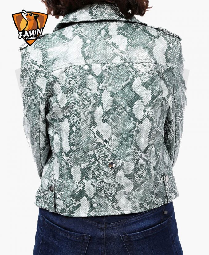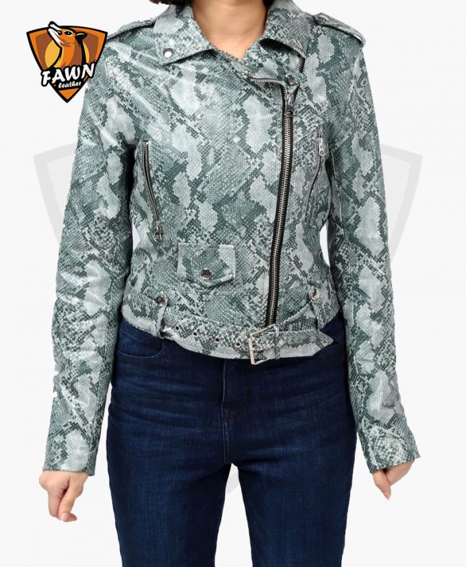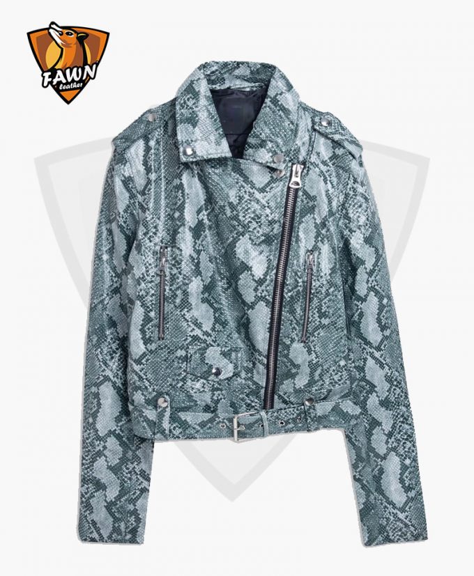 Snake pattern Womens studded leather jacket is made for branded person. This print of the jacket gives a cool look. It’s comfortable to wear. It is a special piece of our ladies outfit collection. It is a great choice for night outs, camping, picnics, driving, and other occasions. We use the excellent material in our leather outwear. Featuring a Long Sleeves, Cuffs and Regular Fit.