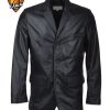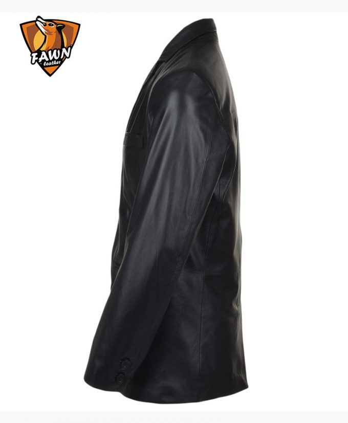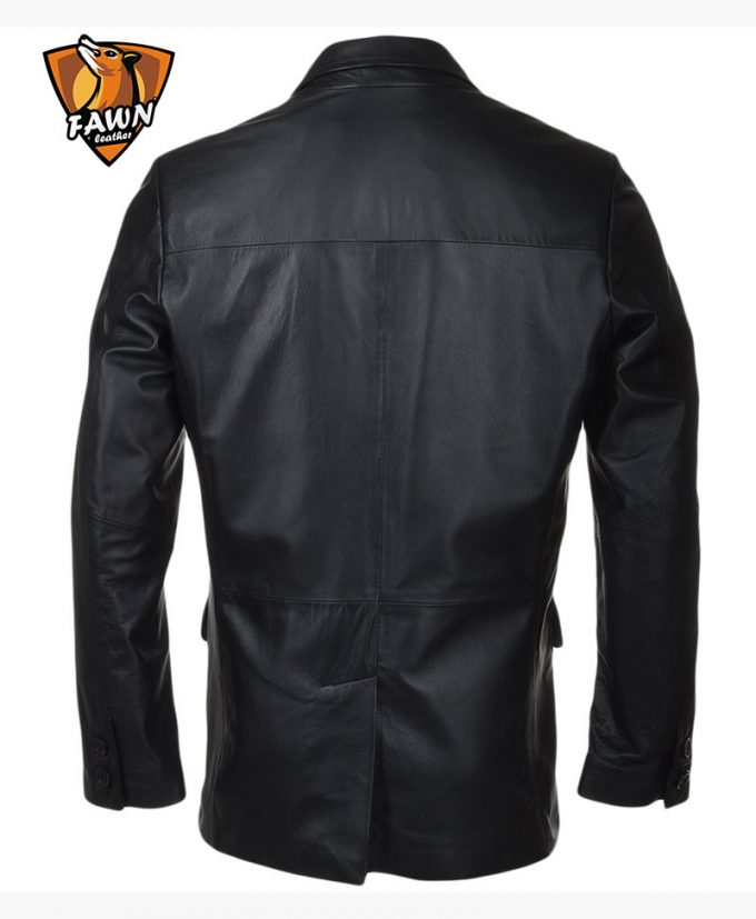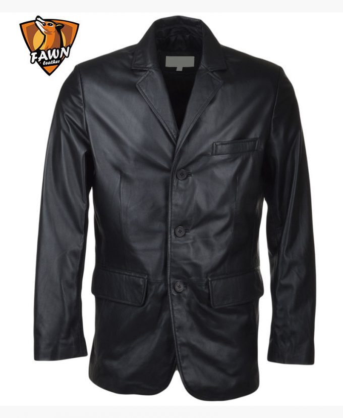 Three Button Black Men’s Leather Blazer