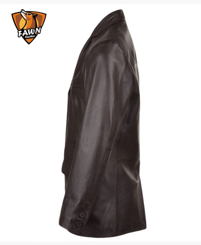 Mid brown men’s leather blazer is the perfect choice for all the stylish man. This trench coat gives the modern look in regular days. This is trendier fashionable and outclass coat made by fawn leathers. We use the high quality material in our leather blazer. Features in the leather jacket Premium quality, Regular Fit, modern style, Zip closure, and navy color.