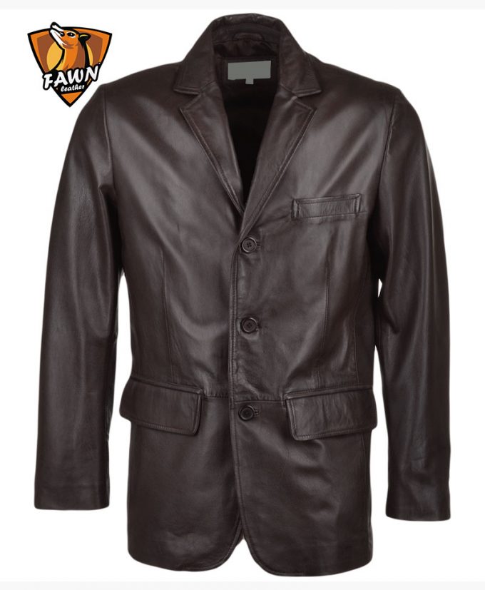 Be the first to review “Three Button Mid Brown Men’s Leather Blazer”