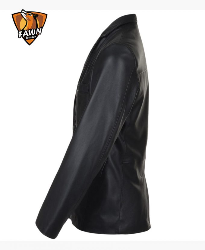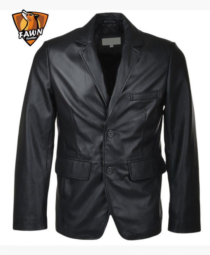 Two button black leather blazer is the perfect choice for all the stylish man. This trench coat gives the modern look in regular days. This is trendier fashionable and outclass coat made by fawn leathers. We use the high quality material in our leather blazer. Features in the leather jacket Premium quality, Regular Fit, modern style, Zip closure, and black color.