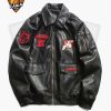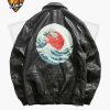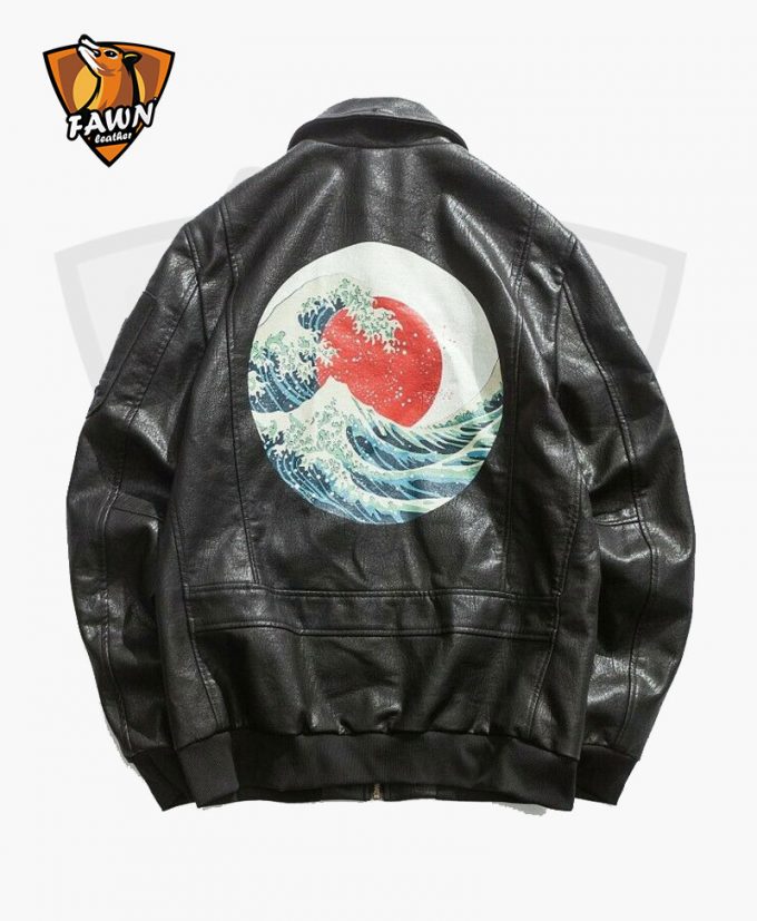 Be the first to review “Wave Print Crane Embroidery Printed Leather Jacket”