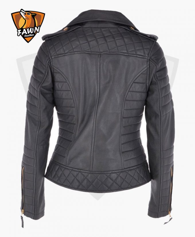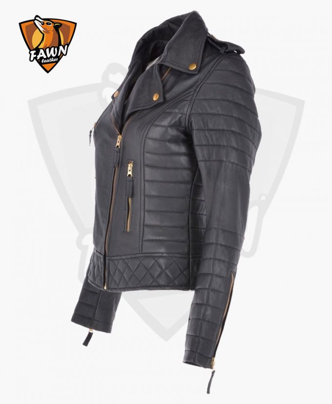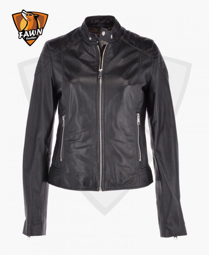 Women’s black leather biker jacket is especially design for ladies Racer. This biker jacket give a high proof security and modern look when you’re riding a bike and motorcycle. We use the high quality material in our leather jacket. Features in the leather jacket Premium quality, Regular Fit, Zip closure, Biker Sleeves, and black color.