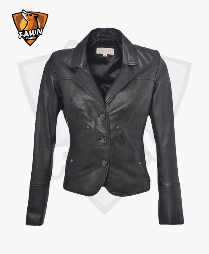 Women’s black nap leather coat is the perfect choice for all modern women. We have a great collection of Lady Coats that the women like. This is a trendier fashionable and outclasses coat made by fawn leather. We use high-quality material in our leather blazer. Features in the leather jacket Premium quality, Regular Fit, modern style, button closure, and Black color.