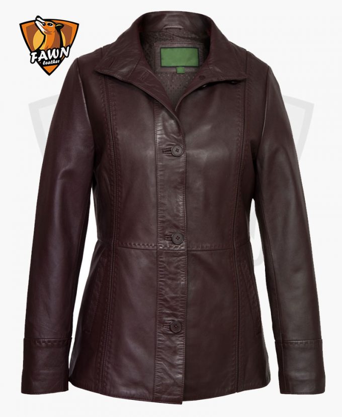Women’s burgundy real leather coat is the perfect choice for all modern women. We have a great collection of Lady Coats that the women like. This is a trendier fashionable and outclasses coat made by fawn leather. We use high-quality material in our leather blazer. Features in the leather jacket Premium quality, Regular Fit, modern style, button closure, and burgundy color.