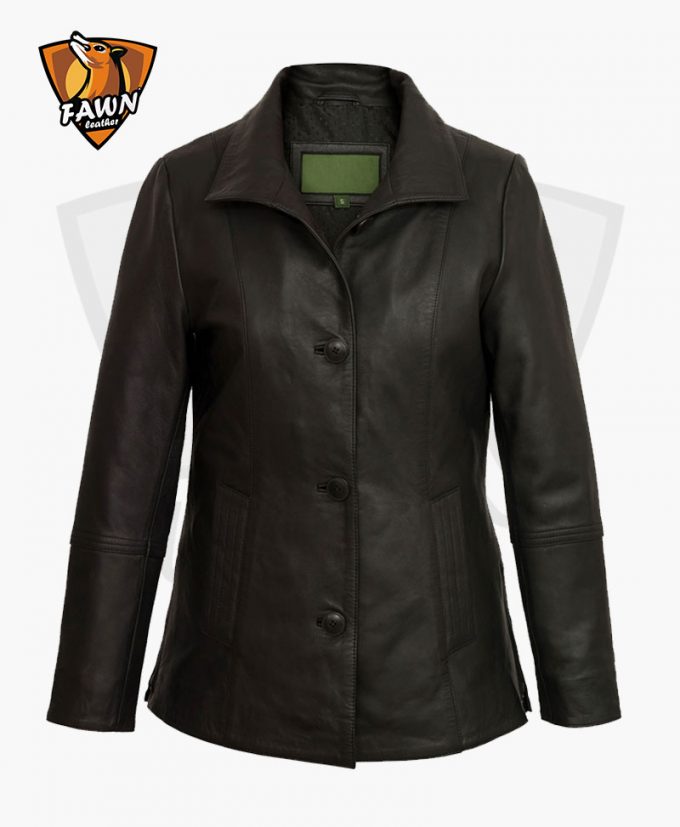 Women’s high quality black leather coat is the perfect choice for all modern women. We have a great collection of Lady Coats that the women like. This is a trendier fashionable and outclasses coat made by fawn leather. We use high-quality material in our leather blazer. Features in the leather jacket Premium quality, Regular Fit, modern style, button closure, and black color.