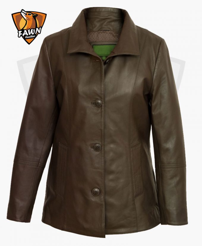 Women’s high quality brown leather coat is the perfect choice for all modern women. We have a great collection of Lady Coats that the women like. This is a trendier fashionable and outclasses coat made by fawn leather. We use high-quality material in our leather blazer. Features in the leather jacket Premium quality, Regular Fit, modern style, button closure, and brown color.