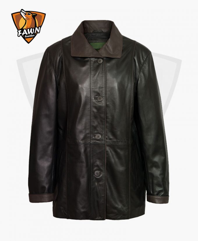 Women’s modern style black leather coat is the perfect choice for all modern women. We have a great collection of Lady Coats that the women like. This is a trendier fashionable and outclasses coat made by fawn leather. We use high-quality material in our leather blazer. Features in the leather jacket Premium quality, Regular Fit, modern style, button closure, and Black color.