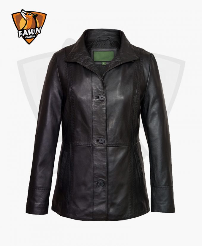 Women’s new arrival black leather coat is the perfect choice for all modern women. We have a great collection of Lady Coats that the women like. This is a trendier fashionable and outclasses coat made by fawn leather. We use high-quality material in our leather blazer. Features in the leather jacket Premium quality, Regular Fit, modern style, button closure, and black color.