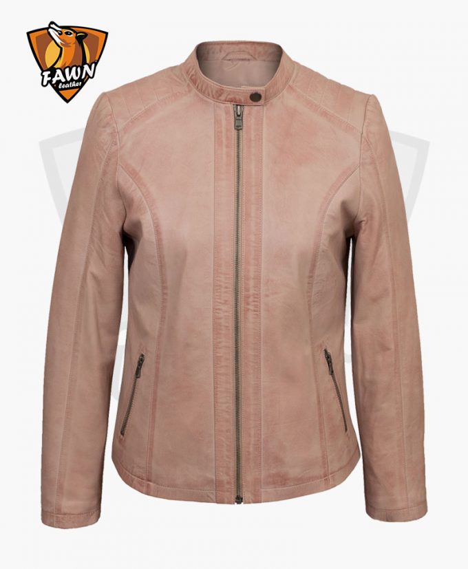 Be the first to review “Women’s Pink Leather Bomber Jacket”