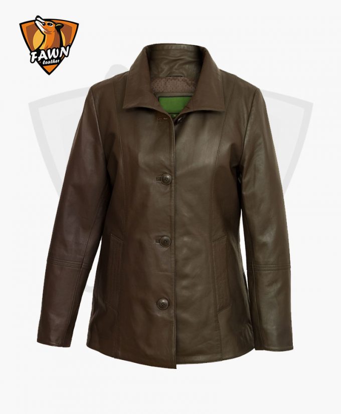 Women’s real quality brown leather blazer is the perfect choice for all modern women. We have a great collection of Lady Coats that the women like. This is a trendier fashionable and outclasses coat made by fawn leather. We use high-quality material in our leather blazer. Features in the leather jacket Premium quality, Regular Fit, modern style, button closure, and brown color.