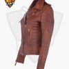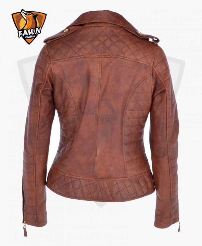 Women’s tan leather motorcycle jacket is especially design for ladies Racer. This biker jacket give a high proof security and modern look when you’re riding a bike and motorcycle. We use the high quality material in our leather jacket. Features in the leather jacket Premium quality, Regular Fit, Zip closure, Biker Sleeves, and brown color.