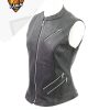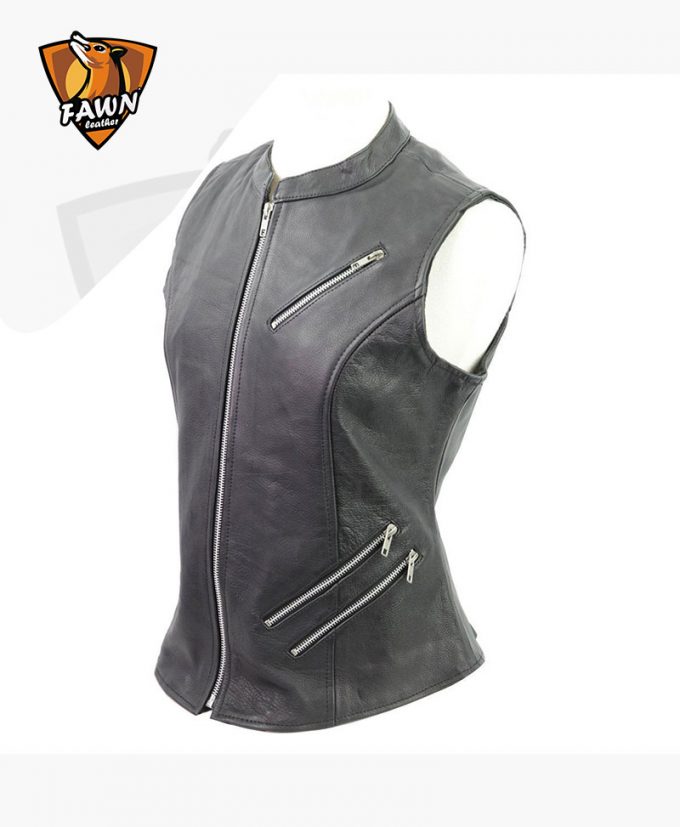 Women’s zipper black leather vest is best for all the motorcycle ladies rider. Ride your bike with our high quality leather vest. We use the premium quality material in our leather garments. Features in the leather vest Premium quality, leather, Regular Fit, YKK zippers throughout, Snap front closure, two outside zippered pockets, modern style, and black color.